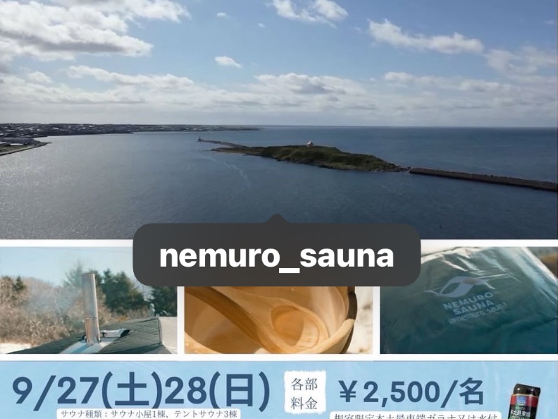今日は根室地域おこし協力隊で、ワタクシのサウナ弟子、ペグ竜君主催のサウナフェスが、根室さんま祭りに合わせ、金刀比羅神社の第二駐車場🅿️にてサウナフェスが開催。今回はテントサウナ🏕️が3基、別海町上風連のサウナ芸術家🧑🎨いっしーさん製作のサウナ小屋が1基、ミニプールの水風呂とシャワー🚿も完備、着替え用テント⛺️2基も備えお一人様2,500円で二日間午前午後4部制で開催中!師匠としては見に行ってやらないと。