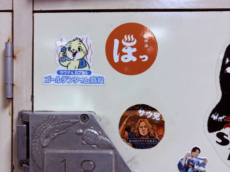 帰りにステッカー貼っていい許可をもらい、財布の中にあった脳汁銭湯ステッカーを貼るトリ🐔併せて月見湯のステッカー&キーホルダーもゲット