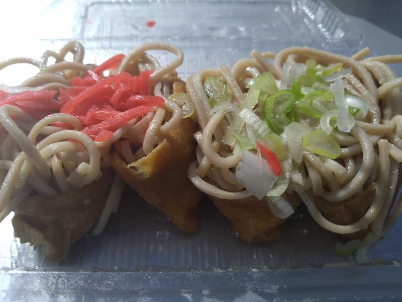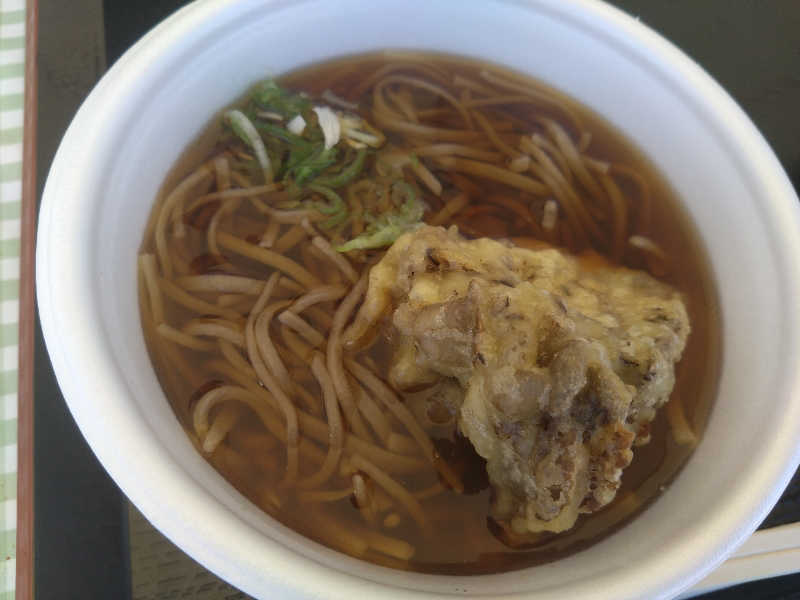 サウナ前飯は90分並んで食べたまいたけ天そば、いなりそば。