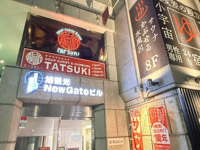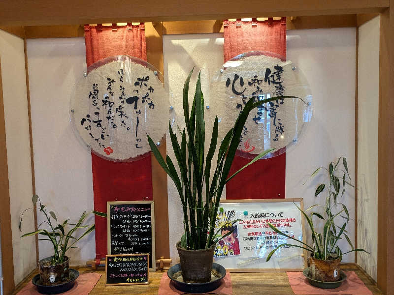 随所にある看板が井上さんが書かれたもの、グルシン水風呂が黄金体験とな・・・これを頭にかけてもらいてぇ