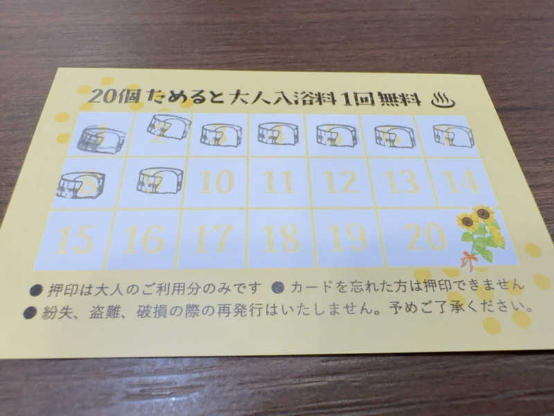 久々に来たら入浴特典のチケットがスタンプカードに変わってた。