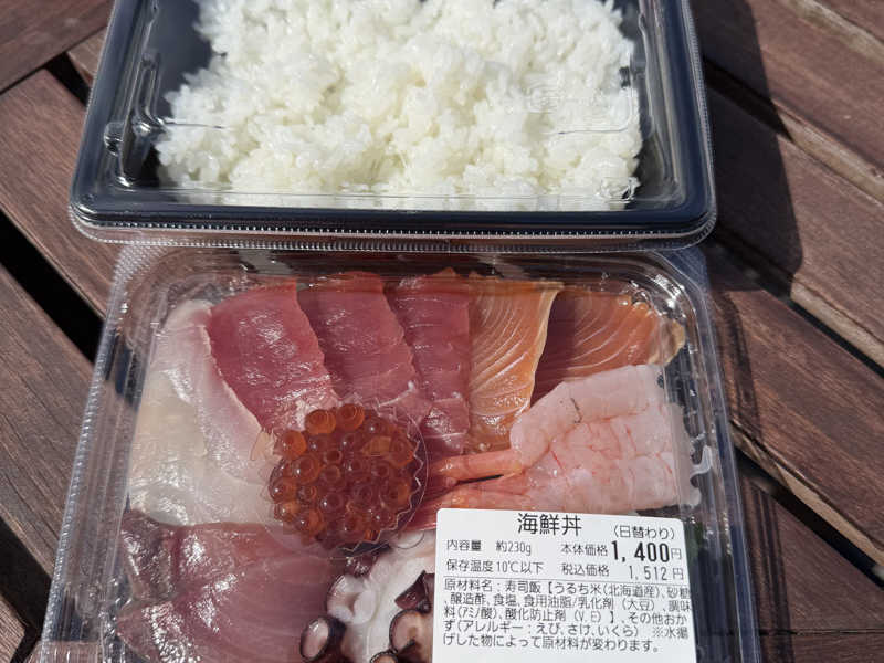 目的地の港町市場にて、1,400円の海鮮丼をひと口…。