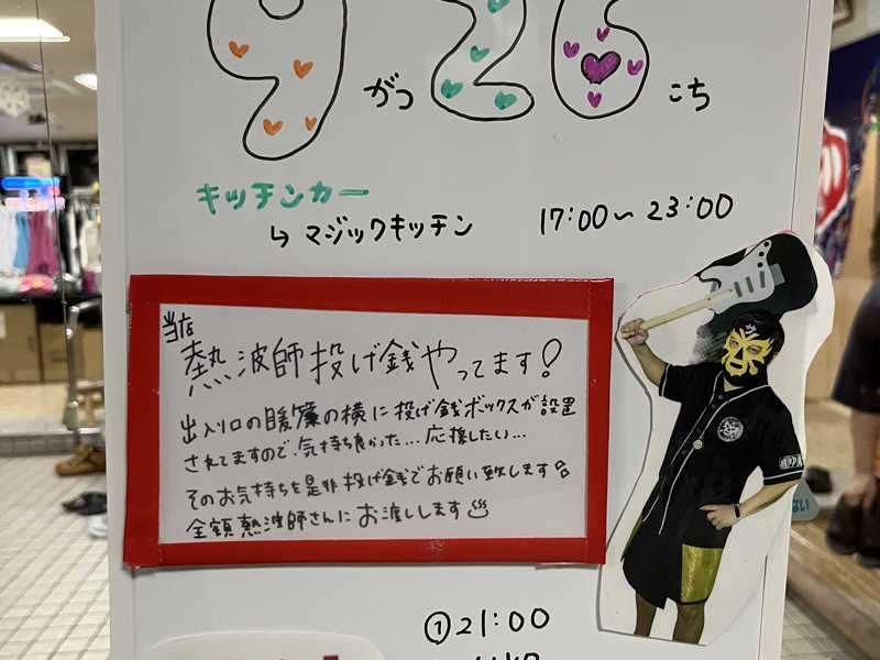 サ室に敷いてある座面の白マットがたまにビッチョビチョのものがあるので、スタッフロウリュ前とかにマットの状態をある程度確認·状態悪いものは都度交換をやっていただけると有り難いです(支配人が今日ロウリュ前にやっていただいてました(ありがとうございます))