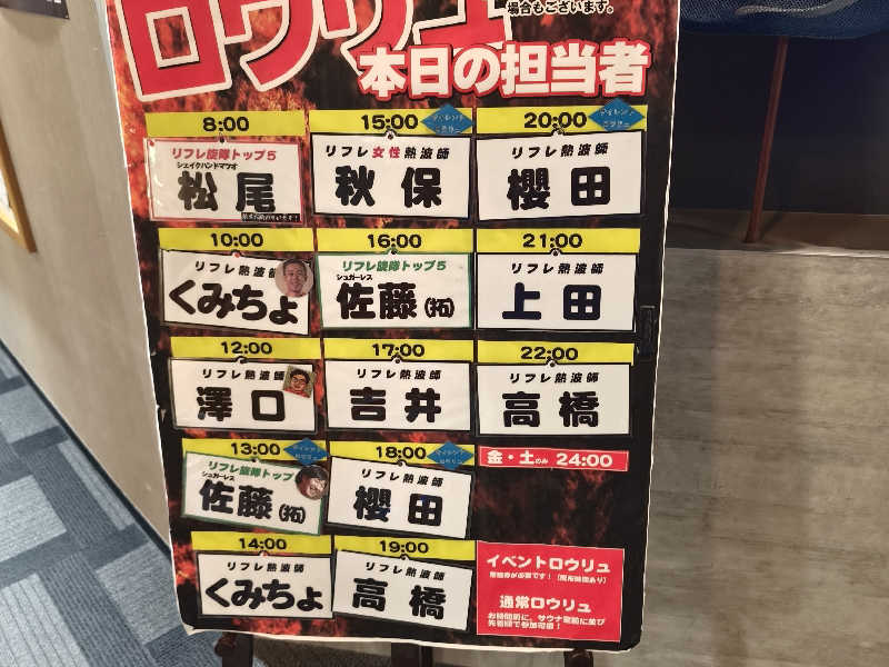 あまり早くサウナ入り始めると良くないかな〜なんて思いながら向日葵の香り湯となりゆき炭酸泉を往復してたらスタッフロウリュで辻さんが来てたのでサウナにGO