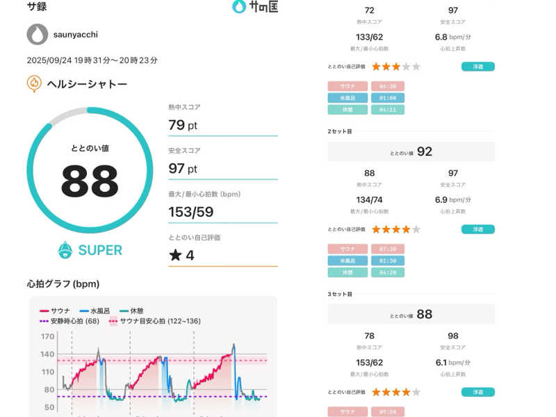最近はサウナの調子が悪く、数値、体感的にもイマイチなととのい感。