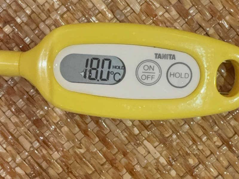 水風呂は備えつけのデジタル表示で15.6℃を指している。