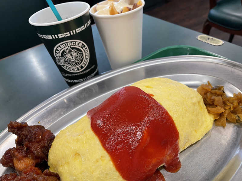 お昼はラッピ行きました、昭和店。11時くらいに行ったのに混雑してました。チャイチキオムライスにラキポテとコーラ。