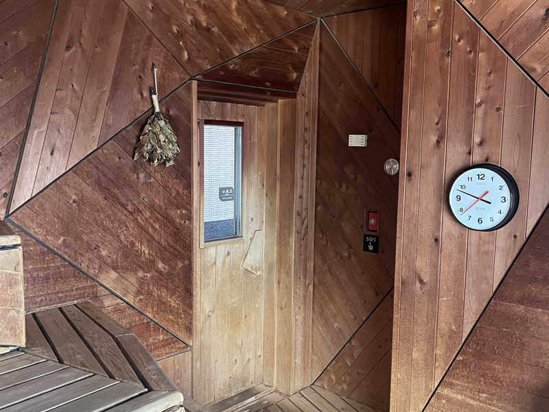 イグルーは外気浴ゾーンのど真ん中に鎮座する。黒い羽のコートをまとったようフクロウなような出たち。地域としてはとても合ってる。中は4人程度がこじんまり座れる特注igluストーヴ。ホテルサウナに薪が置いてあるとか・・・大変な時代に生きてしまっているもんですね・・・独特な熱気に身を委ねながらゆっくりむされる。設定はやや物足りない70度設定ではあるが、ロウリュで部屋が小さく、アールを描いているせいで素早く・激しく熱は回る。水風呂は反対側同様脳天から冷ましてくれる仕様。