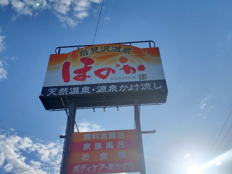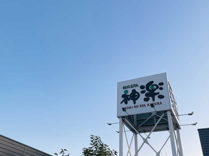 スパ神楽の大きい看板と青空と雲のコントラストには