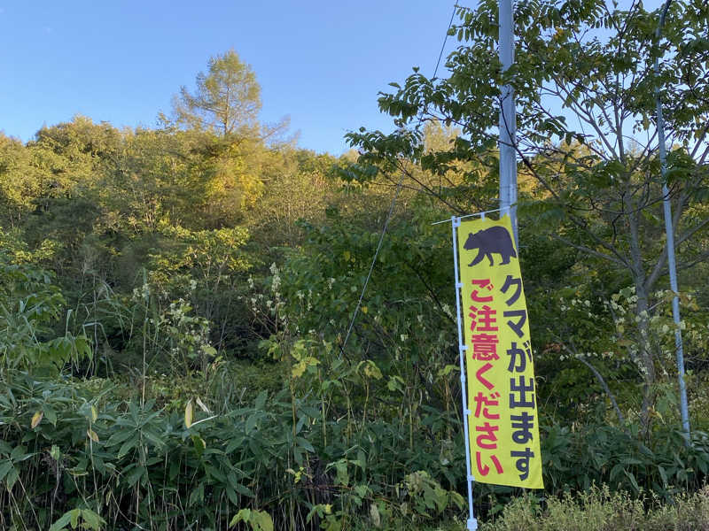 途中の道路には『熊出没』看板やのぼり旗の
