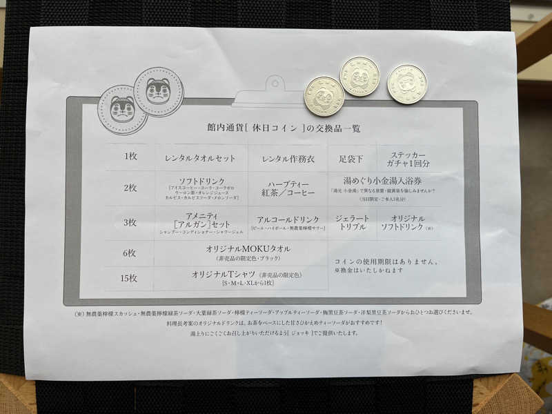 休日コインを2枚受け取る