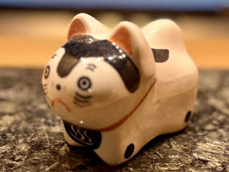 中央のストーブの前にはヌシが鎮座