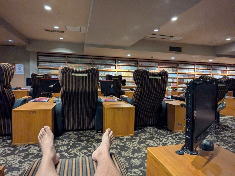 結局15分×4(フィンランド×3、スチーム×1)セット、1時間ちょいで終了。あとはリクライニングで休んで2時間でOUT。