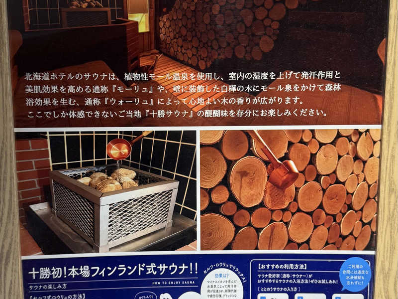 モール温泉で温まりいざ!入った瞬間に身体の芯に入り込む心地良い熱さ、そして森林浴を感じさせる香りが素晴らしい!すぐに良いサウナだと分かった!