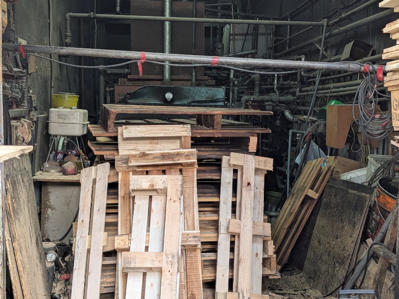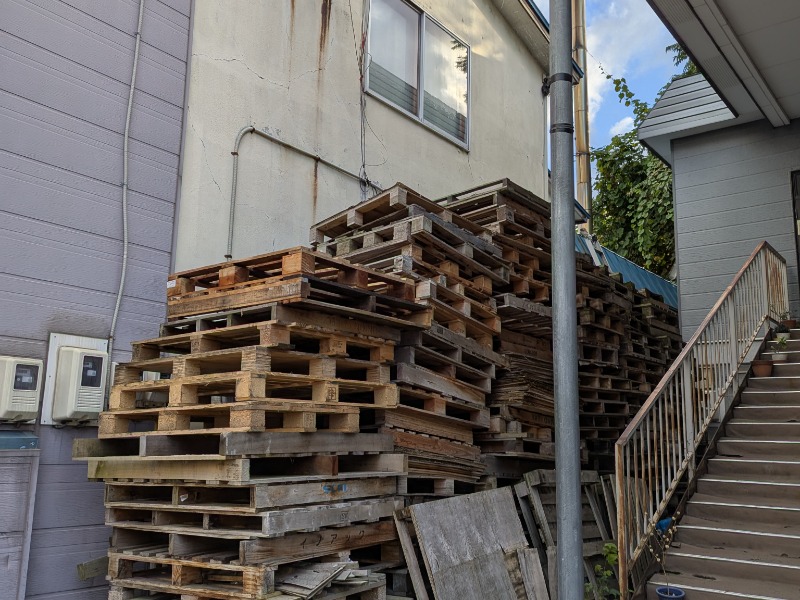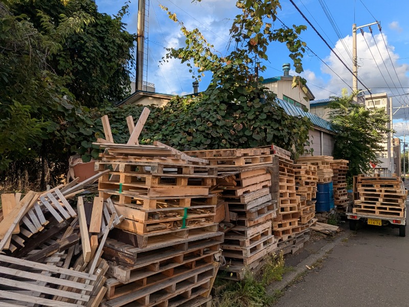 滅茶苦茶レトロだなぁ(笑)店外にはパレットが積まれていていかにも薪をアピール。