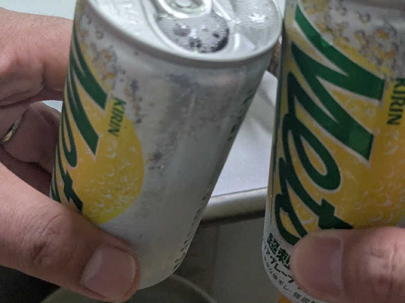 湯上がりにサウ兄とチビメッツで乾杯儀式🍻