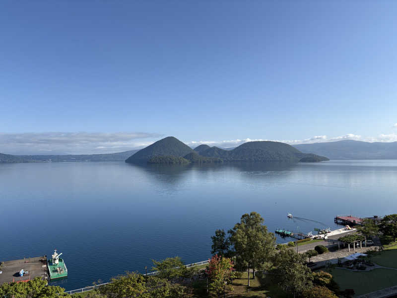 8階の星の湯利用。前日の月の湯と違い、ここは洞爺湖ビューを楽しむサウナ。サウナ室は月の湯より強めのセッティングで外気浴がよりクリアに感じた。サウナ室からも洞爺湖を眺められるが、露天で見る景色は澄んだ空気の香りと相まって格段に良い。