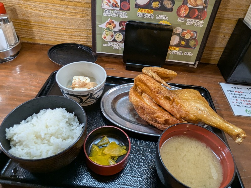 来た来た若鶏定食。相変わらずの馬鹿な飯だよ(笑)