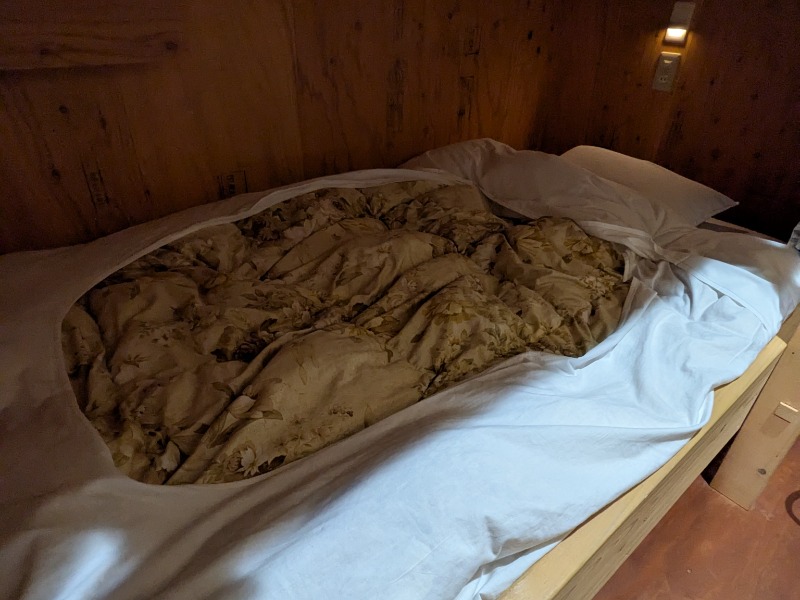 20分近く歩いて本日の宿へ。大正湯という銭湯の上に宿が併設されてる和の風というドミトリー。