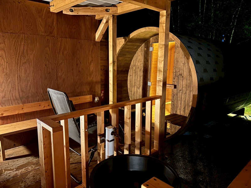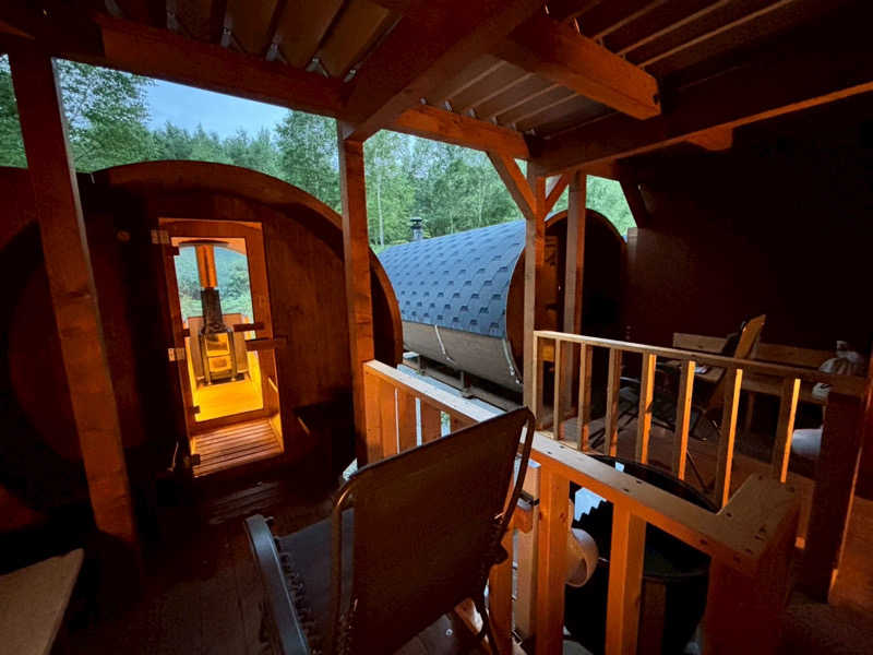 自分で薪で温度が調節できました。遠目に鹿が通ったりと、とても風情がありました。デトックスウォーターも置いてあり、非常に良かったです。初のバレルサウナ、とても堪能することができました。