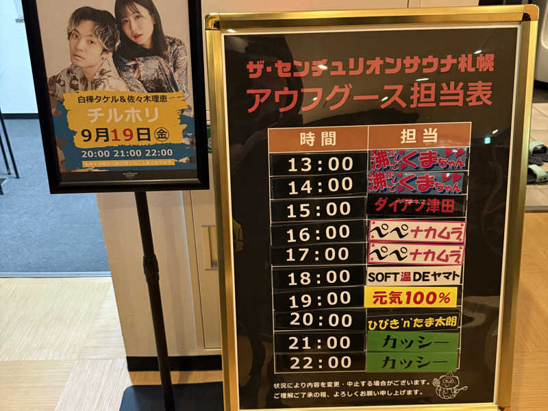 ギャラクシーロウリュ20時はひびき'n'たま太郎ロウリュ🔥3月に卒業して約半年振りに一回限りの復活🐦🔥🔥参加者はほぼ満員🈵はじめはハルビアメインでアロマ投入🔥勝俣支配人スタイルの団扇さばきでまずはゆっくり体の中から熱くしていく☺️🔥最下段でも熱々🔥給水タイムを挟んで後半はメトス側にもアロマ投入そして団扇強め🔥😱さらなるアロマ追加投入からのブロアー攻撃🔥🔥最後は参加者全員でひびきウェーブで熱々フィニッシュ❗️🔥🔥