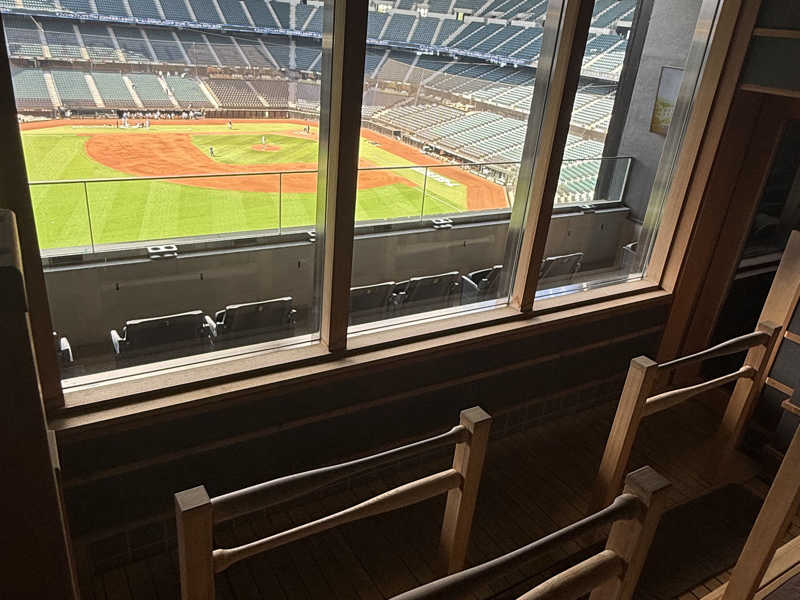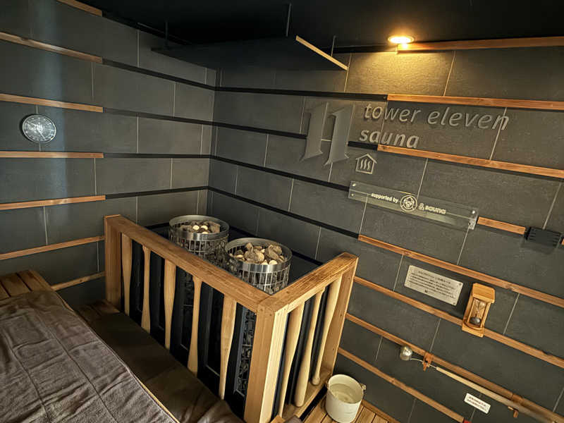 早速サ活♨️入って奥にサウナ室🔥サウナ室前にはウレタンマットとタオルマットが置いてある😆これはありがたい😆サウナ室に入ると奥行きのある室内🔥手前側は立ち席と奥は3段の座面🔥メインのサウナはハルビアのサウナヒーター2基🔥🔥セルフロウリュも可能🔥サウナストーンがボールだったり手すりや腰掛けはバットをモチーフにしているので遊び心満載⚾️室温は約85℃のドライタイプなので心地よい☺️🔥上段に座ったら一気に汗が出てくる☺️💦そして目の前には野球場⚾️何とも不思議な感覚⚾️♨️セルフロウリュで温度と湿度が上がってさらに室内は熱々に🔥☺️💦