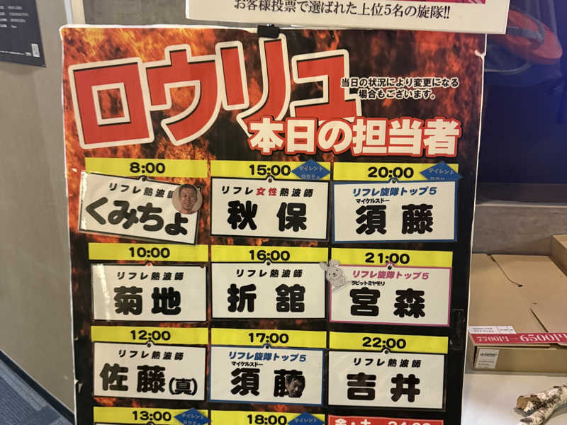 最後のシメは22時熱波支配人吉井ロウリュ🔥なぜか俺のサウナ飯フェアの油淋鶏ーノをずっと推していた😂周りの盛り上がりもあって笑いありの熱波でいい汗❗️😆💦