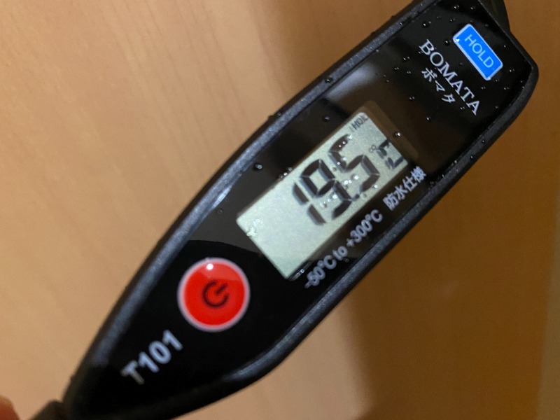 水風呂は冷水を入れないと約19度。セルフオーバーフローでしっかり冷やす。