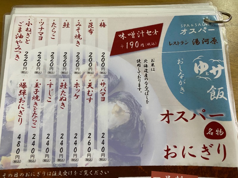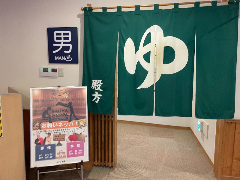 女子サウナへ向かうのを見送り、お腹が空いたので、2階の湯河原へ