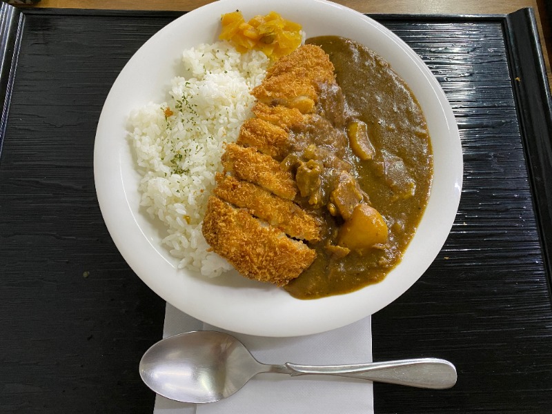 おにぎり付きのオスパーコースなので、おにぎりを選び、井上さんが絶賛していたカツカレーを注文して食べる