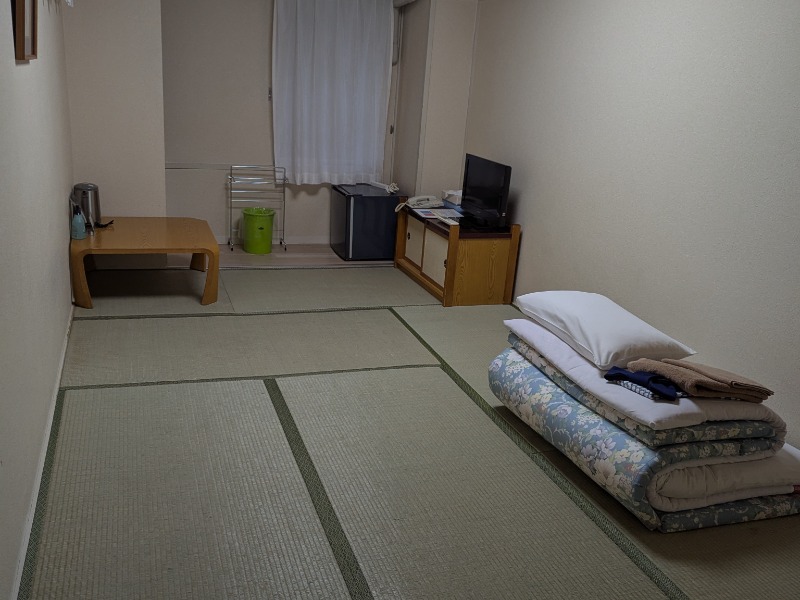 今回は和室、まだハイシーズンなのか、通常は4000円で泊まれるみたいだけど今回は6000円。