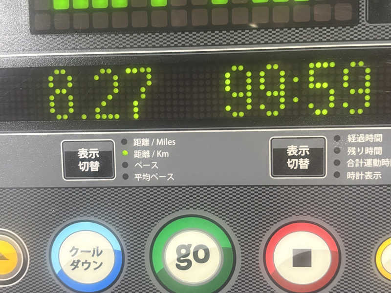 上半身マシーン1時間半利用、からのウォーキングどれ位出来るか試したら、何と🙄100分で強制的にクールダウン表示されて、スピードダウン、傾斜戻り、5分間ローペースになりました。その後終了になりました‼️