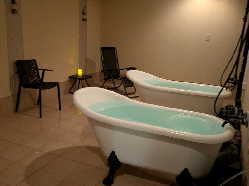 猫足バスタブの水風呂は意外と冷たく熱・冷のギャップ大で全身あまみギッシリの仕上がり。