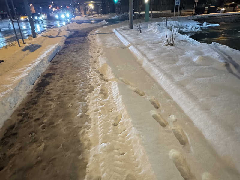 帰り道ホテルへ行こうとしたら、雪道がぬかるんでて前に進みにくい。。。タクシー拾ってホテルへ。チェックイン。