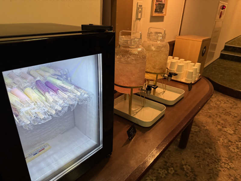 アイスやお水があり、パウダールームもしっかりしており、さすがホテルのサウナ!!