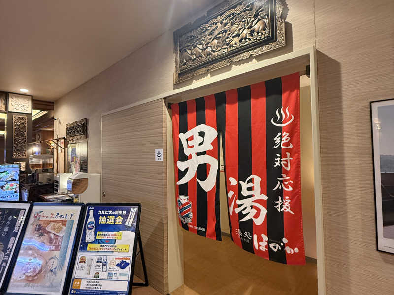 いい風呂。温泉は塩気強いとの事コメントを見たので控えめにサウナを楽しみしまた。とてもでかい!湿度すごい!水風呂は何度だろう。おそらくぬるめだがミント水?青い水風呂だった。