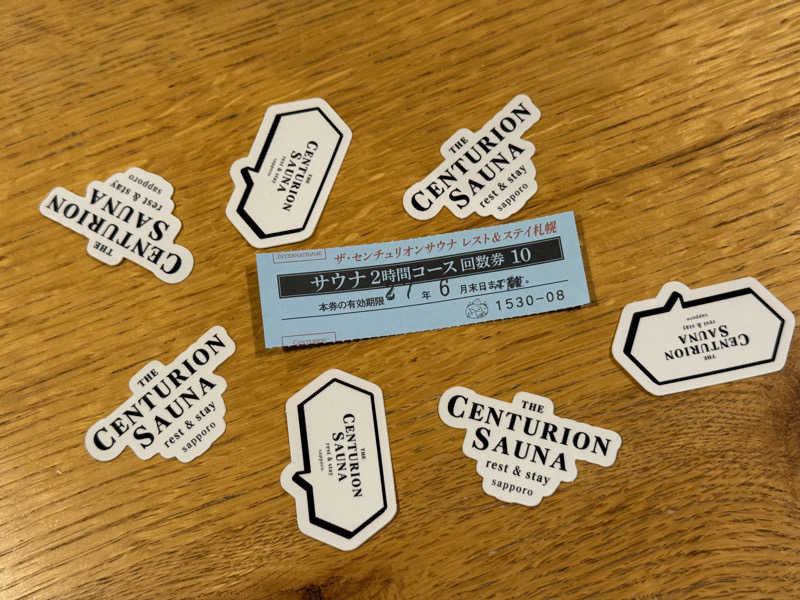 気がつけばカプセルは10個ほど。中にはセンチュリオンサウナ無料券も紛れていました!あとはステッカーの山です。笑