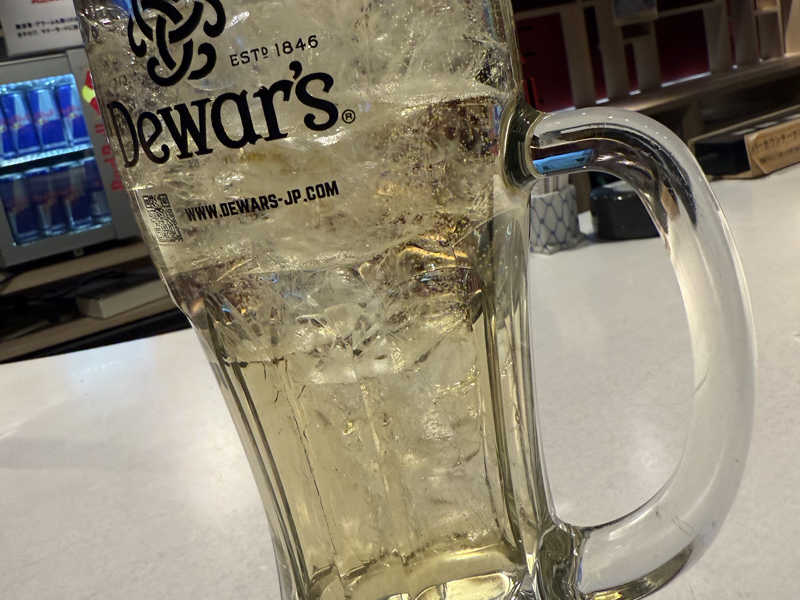 ロウリュ後は3階のカウンターで朝からメガハイ。