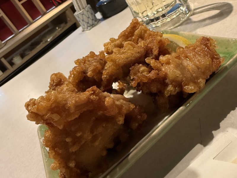 お腹が空いていたので本日は早めに3階へ💨🍺🍚まずはもちろんメガハイボール🍺😆炭酸が染み渡る🍺😆本日のサ飯はやみつきザンギ😋ハイボールとの相性バッチリ❗️🍺😋