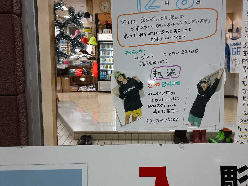 外気浴しようと露天風呂に出たら、雪がボタボタ降ってて一面真っ白でびっくり!これ根雪になるやつやん……。