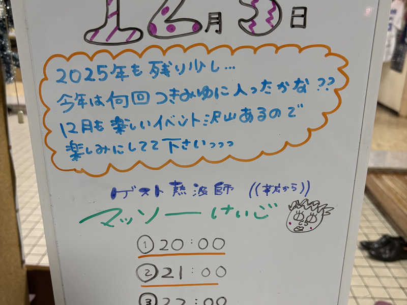 一言:12月1発目は、花神楽!と思いましたが、何と休館日。神楽つながりで、spa神楽に行ってきました!20時を過ぎると人がパンパン。サウナに待ち人がいました…