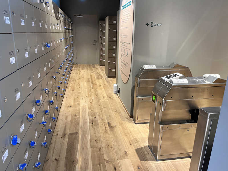 店員さんに声をかける事もなく、靴を脱ぎ、男性側の下駄箱へ。下駄箱の鍵がICバンド付き。そのICバンドでゲートをくぐった時点からあなたの至福の時間と支払料金のカウントは始まります。
