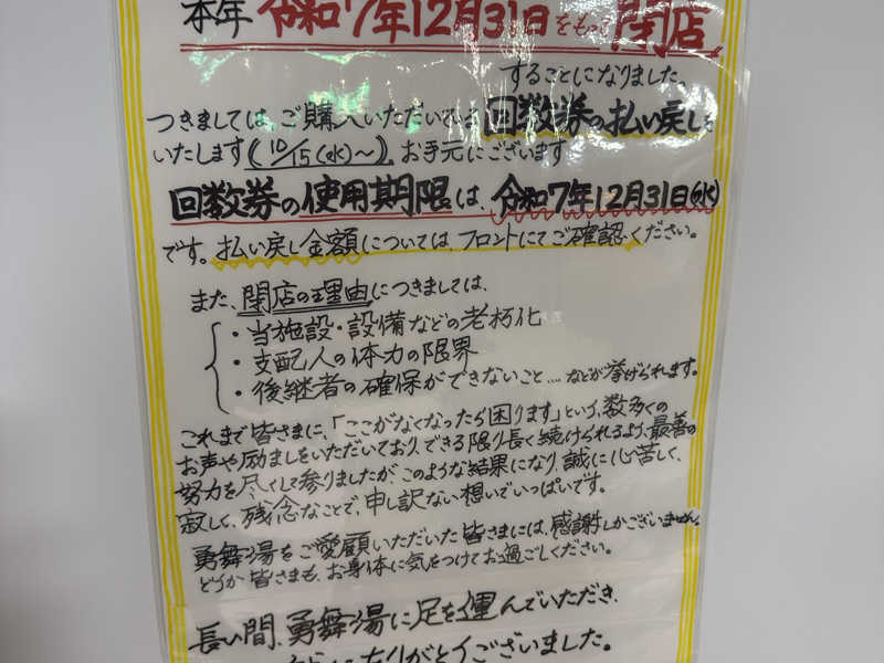 これは何処かで二軒目に行かないとダメだと思って来たのが今年で閉店する勇舞湯♨️