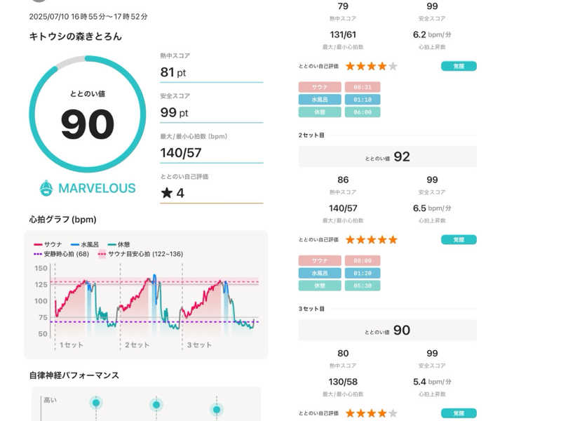 1セット目からもう滝汗💦水風呂→休憩も人が少なめでゆったりと過ごせました。