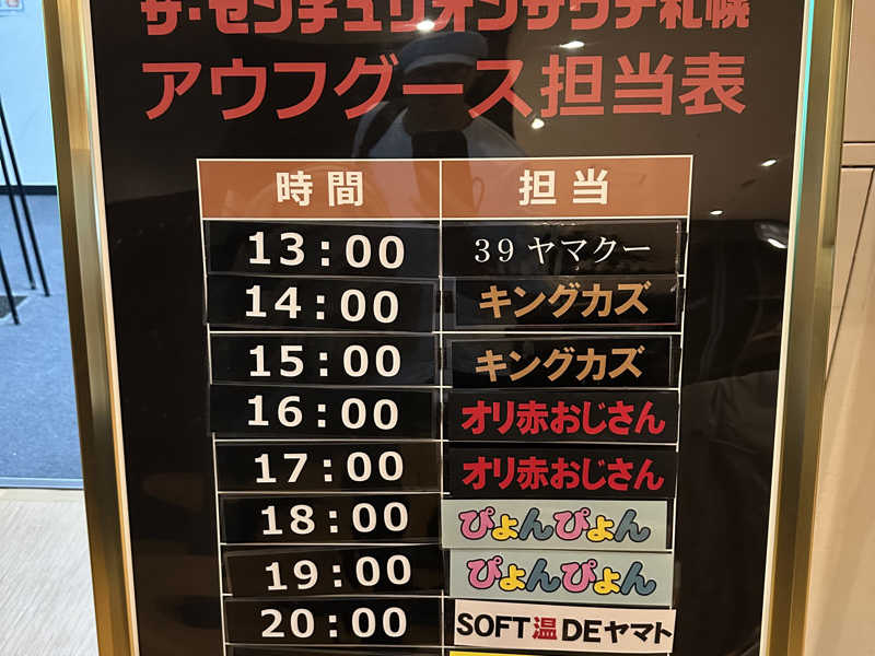 本日は午後から半休🎌用事まで時間があるので一風呂♨️15時過ぎにセンチュリオン入館!フロントに行くと前回に引き続き支配人勝俣さんがお出迎え♨️😮今日はオリエンタル赤坂から熱波師が来ているのだそう❗️😮受付を済ませて早速サウナ室へ❗️🔥