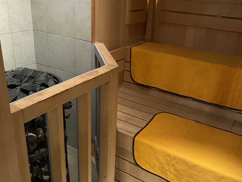 サウナ室の一部(座面から壁面のほとんど)が新しい木材にリニューアルされてました!(ドン!!)