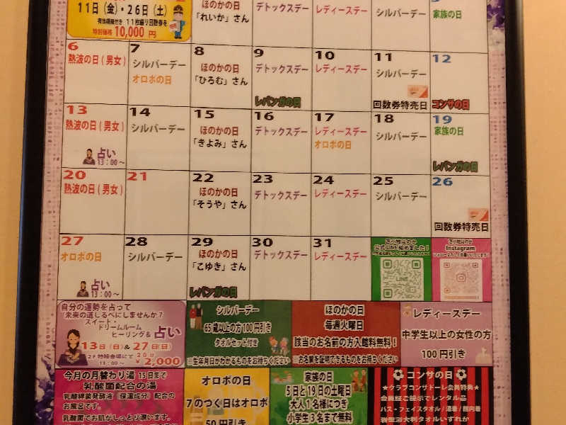 入口で1000円払い、タオルの入った袋を取って