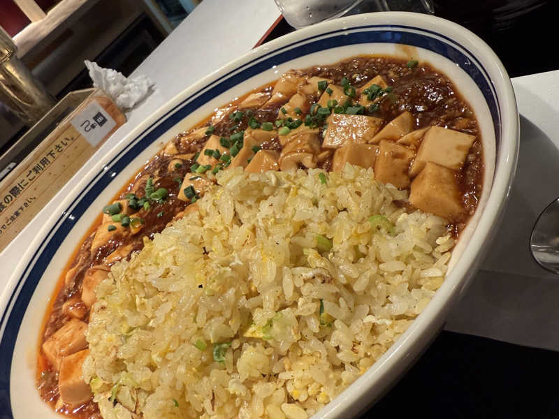 そしてリフレの楽しみ3階カウンターへ❗️🍺🍚😆まずはメガハイボールを注文🍺カラカラに乾いた喉にメガハイボールは至福❗️😆🍺本日のサ飯は麻婆炒飯🍚初めての注文🍚美味しいとは聞いていたので食べてみたかった一品だけどやっぱり美味しい❗️🍚😋ボリュームもあって大満足❗️🍜😆