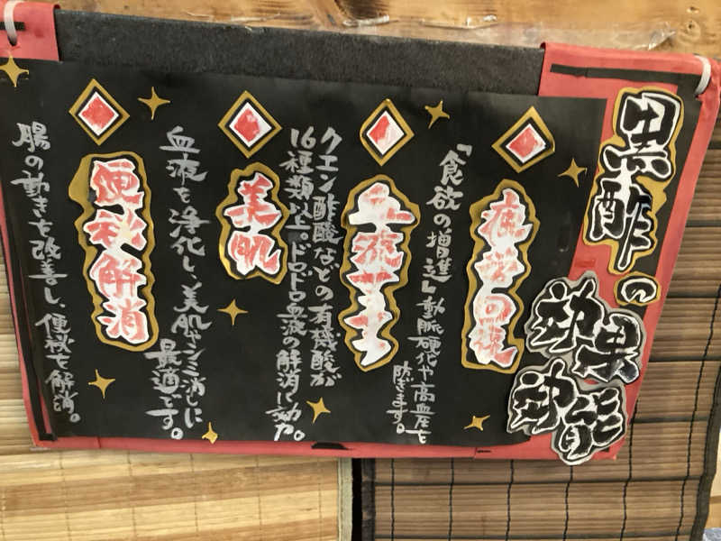 湯上りには黒酢を頂き、40代の身体は最高にととのいました!