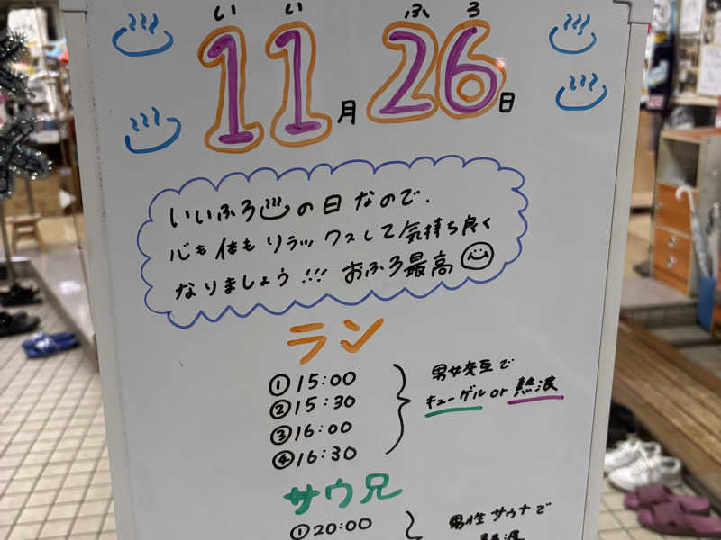 一言:今日は11/26いい風呂の日で月見湯へ。らん様の熱波を二階席で受けることも出来、良き。冷たいのと勘違いしたかのように身震いするバグり熱波は、さすがらん様。